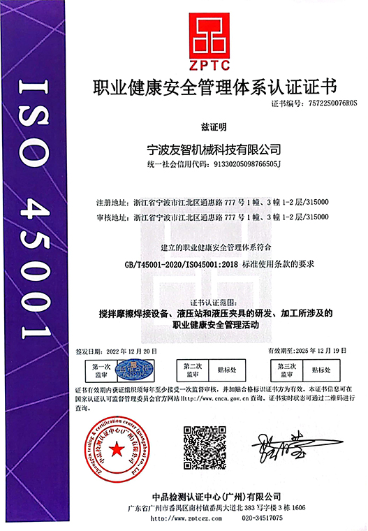 寧波友智機械科技有限公司是一家專業從事攪拌摩擦焊接設備、加工、研發為一體的創新型企業。友智始終堅持人才戰略,引進國內外攪拌摩擦焊接領域的先進技術,積極研發攪拌摩擦焊新產品,以更快的速度為廣大客戶提供有效的攪拌摩擦焊接解決方案。